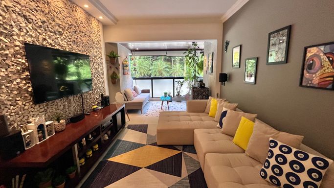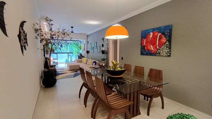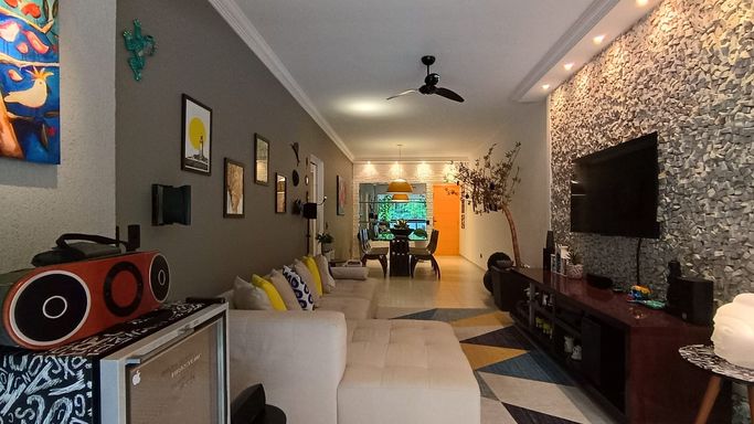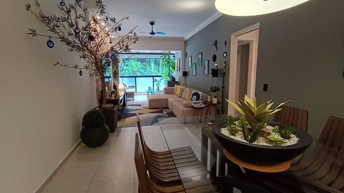Apartamento completamente reformado, com uma atmosfera leve e acolhedora, pensado para quem valoriza conforto e integração dos ambientes. A área social é um dos grandes destaques, com duas salas e sala de jantar totalmente integradas e fechadas em vidro, trazendo amplitude, iluminação natural e um toque moderno ao espaço.