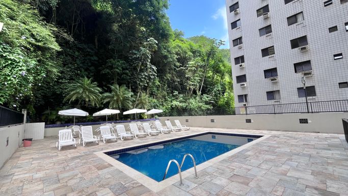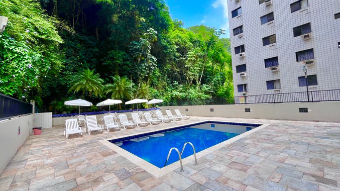 O condomínio oferece estrutura de lazer com piscina, sauna, salão de festas e salão de jogos. Localizado na Barra Funda, no centro do Guarujá, a poucos metros da Praia das Pitangueiras, une excelente localização com privacidade e praticidade para o dia a dia.