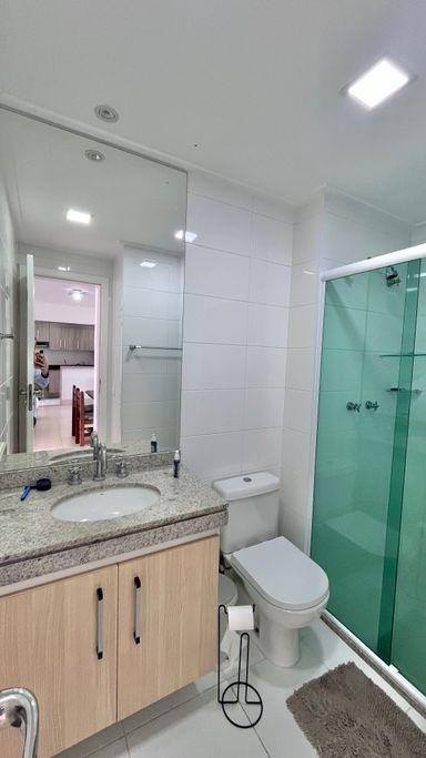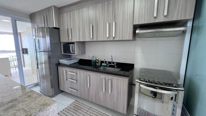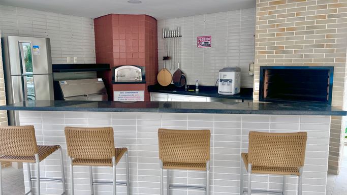 A varanda gourmet é um destaque à parte, com churrasqueira privativa e fechamento em vidro, perfeita para usar o ano todo, com conforto e praticidade.