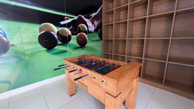 São três dormitórios, sendo uma suíte, com ambientes integrados que ampliam a sensação de espaço. A cozinha americana conversa com a sala, criando um espaço funcional e acolhedor para receber.