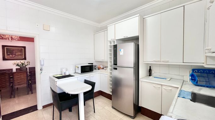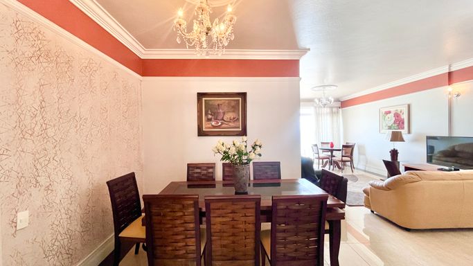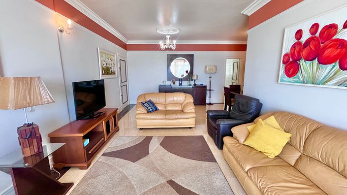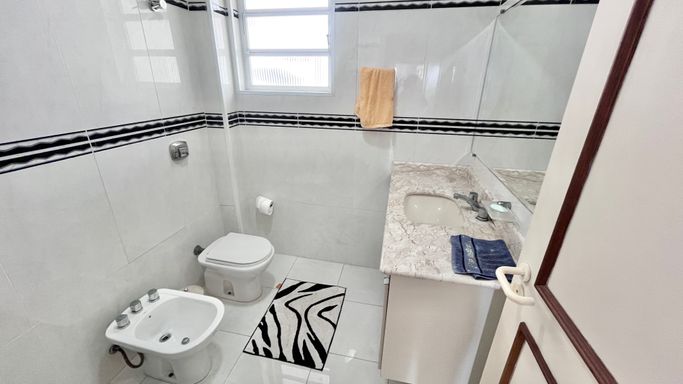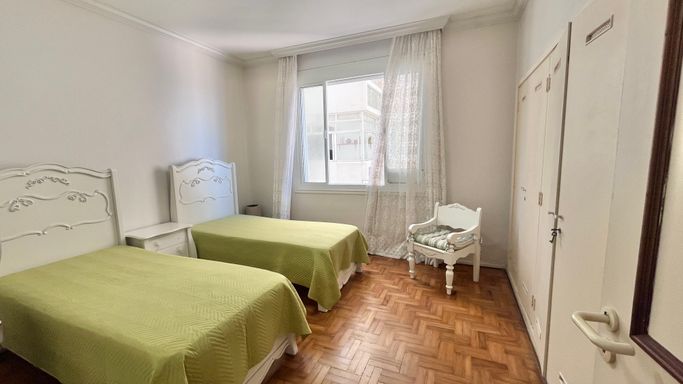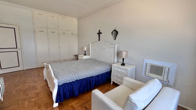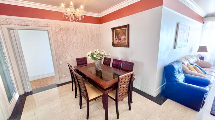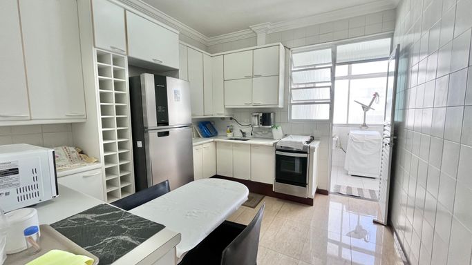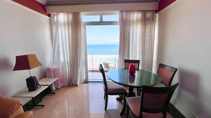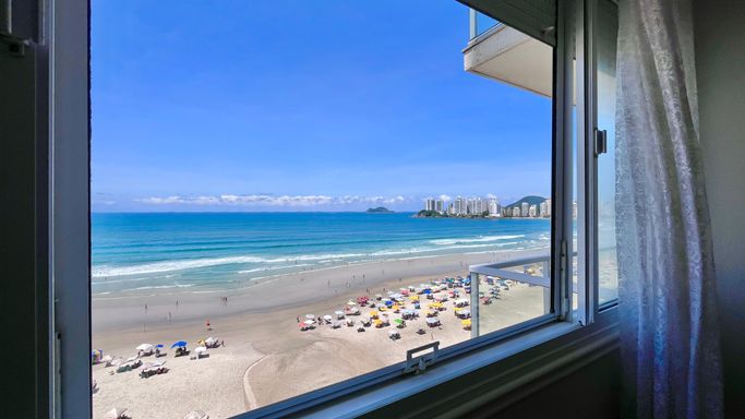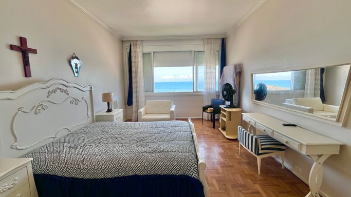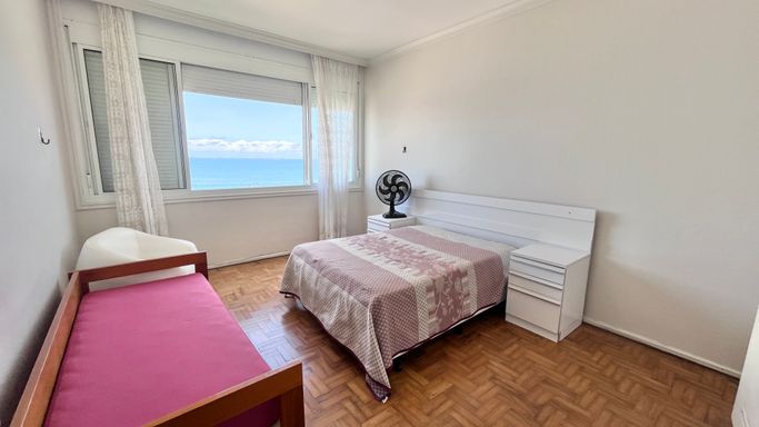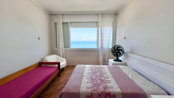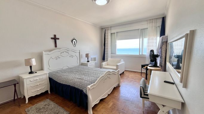 São 3 dormitórios, sendo dois com vista para o mar, além de sala confortável, banheiro social e dependência de empregada com banheiro. Ambientes bem iluminados e proporções generosas valorizam cada espaço.