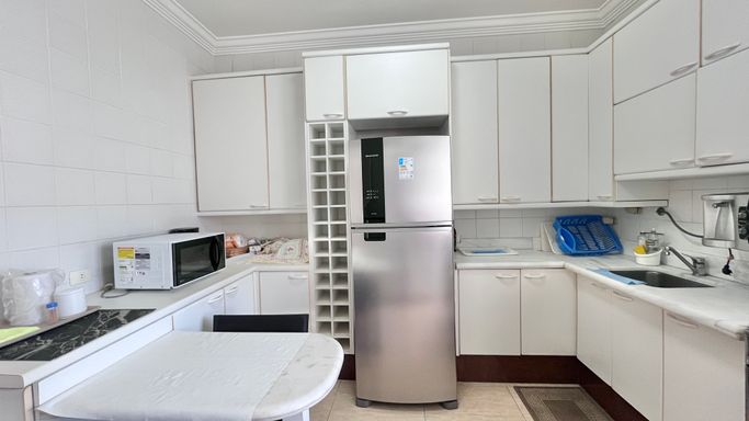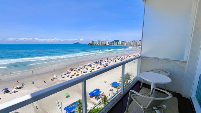 Conta ainda com vaga demarcada, garagem box e uma sala privativa de 24 m² na área da garagem, ideal para depósito ou apoio. Um imóvel que reúne metragem, vista e localização em um dos endereços mais desejados do Guarujá.