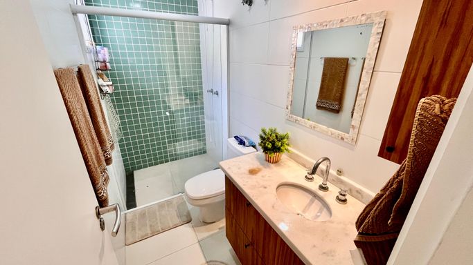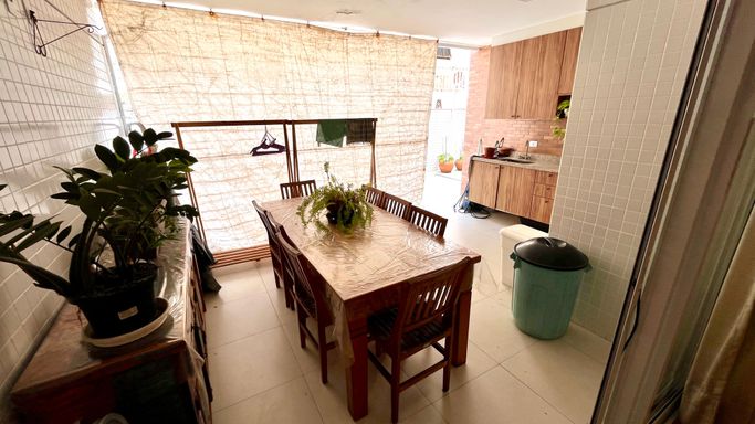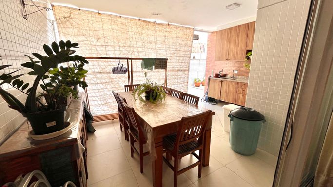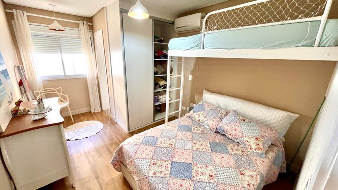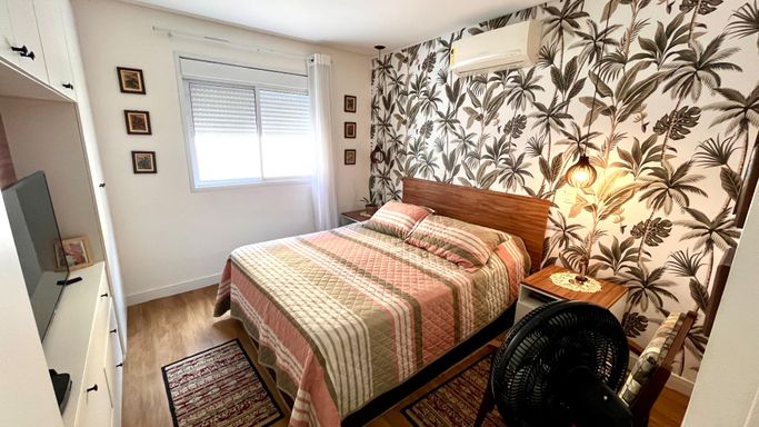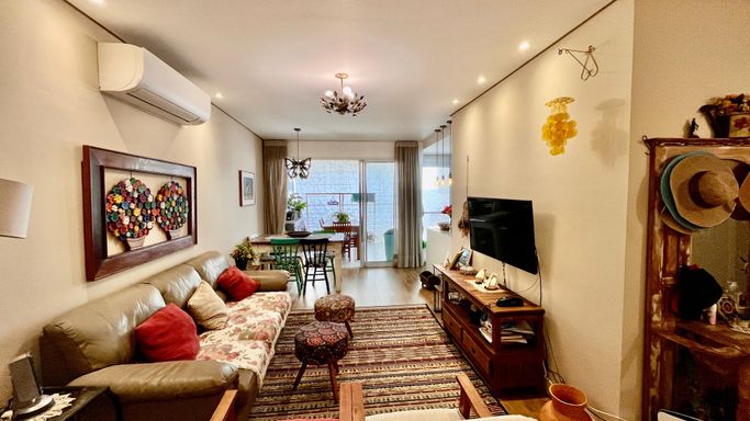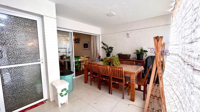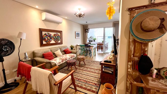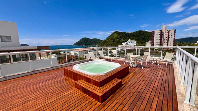 Com 122 m² de área útil e 280 m² de área total, o imóvel conta com 3 suítes, sala bem distribuída, cozinha funcional, lavanderia e uma agradável área externa de uso privativo ao redor do apartamento, com ducha externa. Todos os ambientes possuem ar condicionado e móveis planejados de primeira linha nos banheiros, cozinha, área gourmet, lavanderia e dormitórios. Geladeira e fogão permanecem no imóvel.