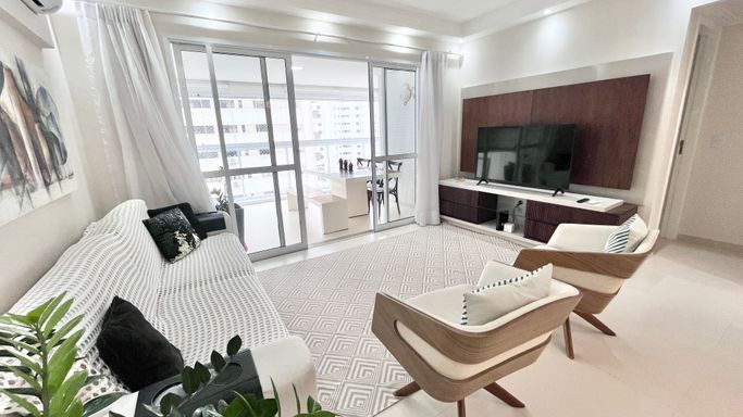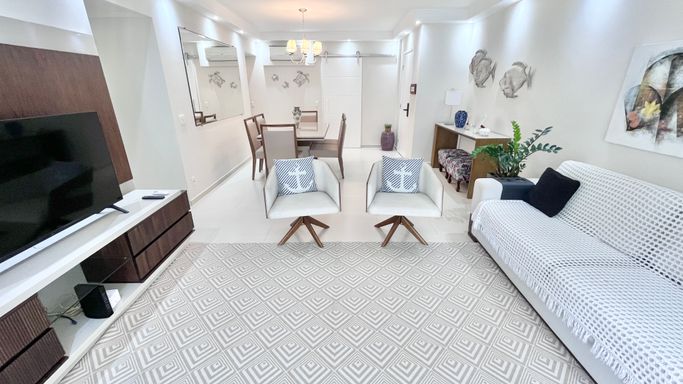 Apartamento para locação a poucos metros da praia, na Barra Funda, uma das regiões mais valorizadas do Guarujá, com fácil acesso ao comércio local e toda a praticidade do dia a dia.
