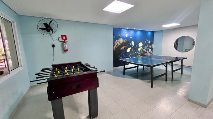 O condomínio oferece lazer completo, com piscina adulto e infantil, academia, sauna, cinema, salão de festas, salão de jogos e brinquedoteca, garantindo conforto e opções de entretenimento para toda a família.