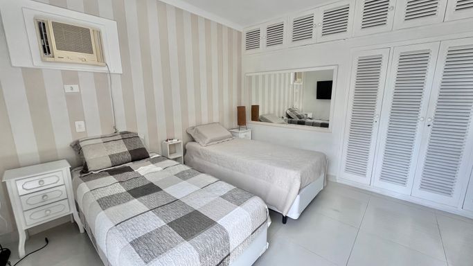 Os ambientes de sala e quartos contam com ventiladores de teto e ar condicionado ( somente nos quartos) .