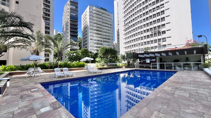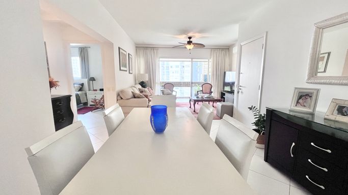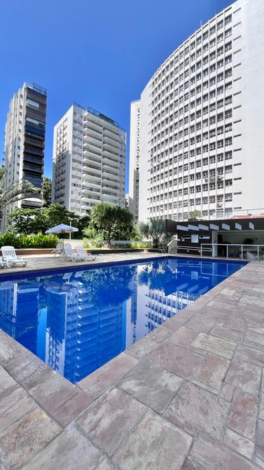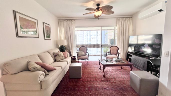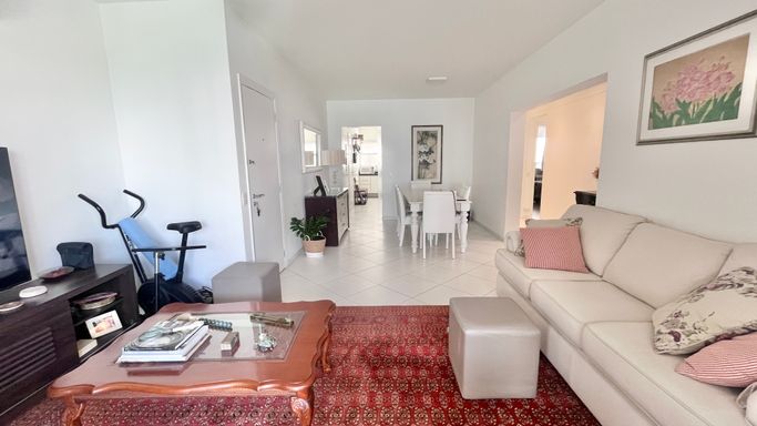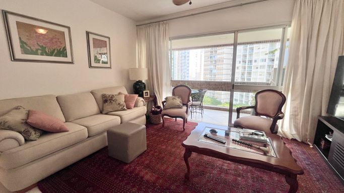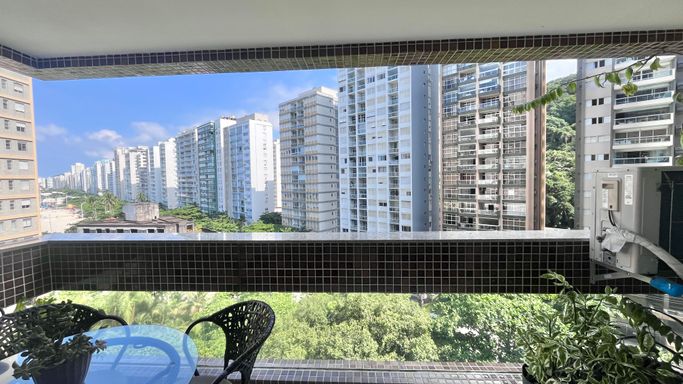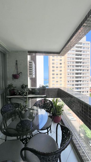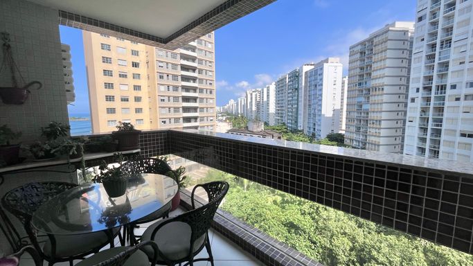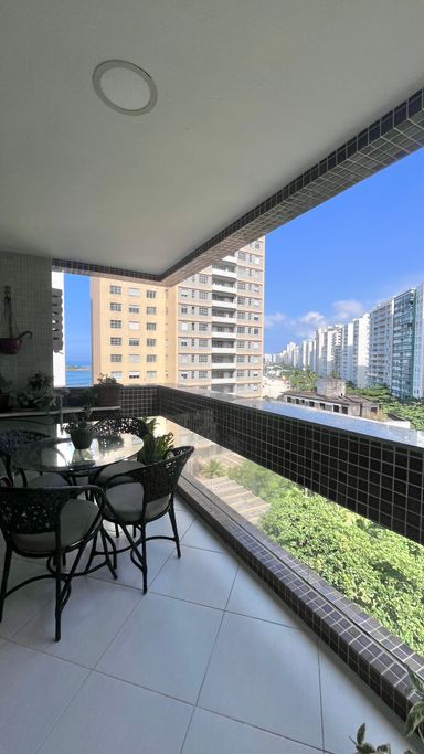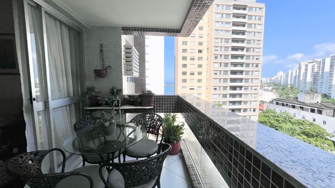 Apartamento com 110 m², localizado na Praia das Pitangueiras, com excelente iluminação natural e uma vista que valoriza o imóvel. A janela principal proporciona uma vista panorâmica da região, com um toque de vista lateral para o mar, em menor proporção.