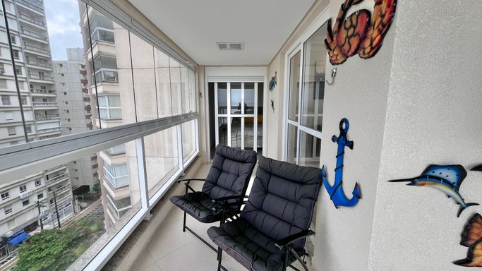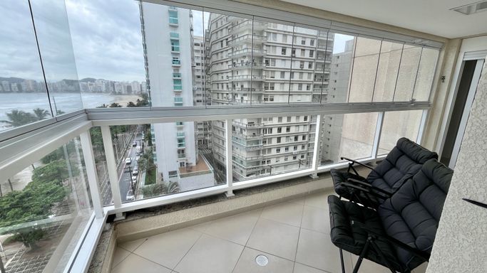 Apartamento frente mar no centro do Guarujá, em frente ao shopping e a poucos passos da praia.