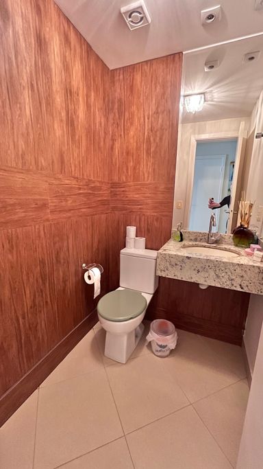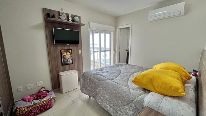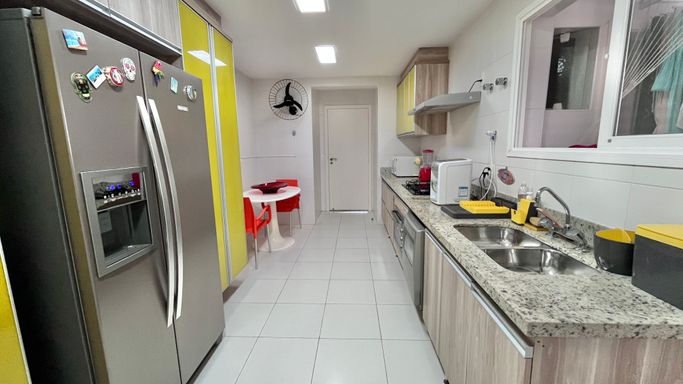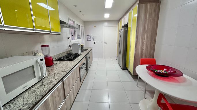 O apartamento conta com 4 dormitórios no total, sendo 3 suítes. O quarto dormitório é uma dependência de empregada com banheiro, trazendo mais funcionalidade ao imóvel. Ao todo, o apartamento possui 5 banheiros.