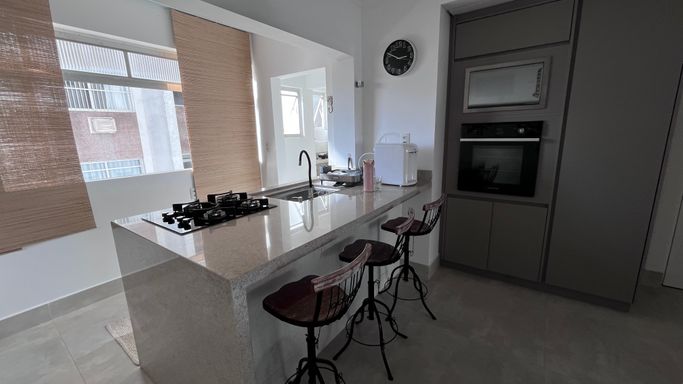 Apartamento totalmente reformado, com aproximadamente 200 m², quatro dormitórios, sendo uma suíte, dois banheiros e um lavabo. Os ambientes seguem uma proposta zen, com decoração leve, acolhedora e pensada para trazer equilíbrio no dia a dia.