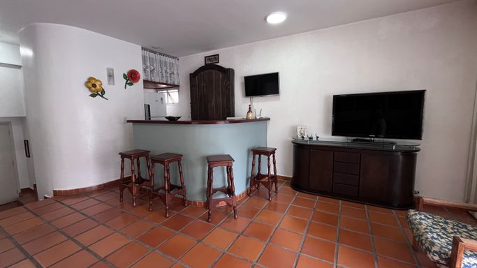 No piso inferior, há uma sala ampla, cozinha funcional e área de serviço bem organizada, além dos dormitórios. Já no piso superior, o destaque fica por conta de uma segunda sala com bar, ideal para receber, integrada à área externa com piscina, perfeita para momentos de lazer com vista e exclusividade.